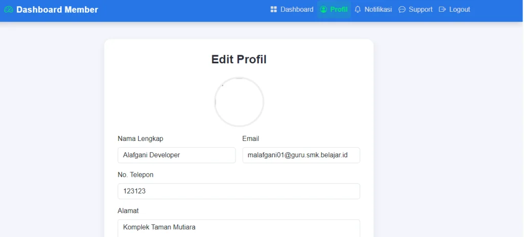 Kini profil kamu sudah berhasil diperbarui. Semua data terbaru akan langsung tersimpan di sistem dan digunakan untuk keperluan layanan, verifikasi, serta komunikasi dari tim alafgani.web.id.